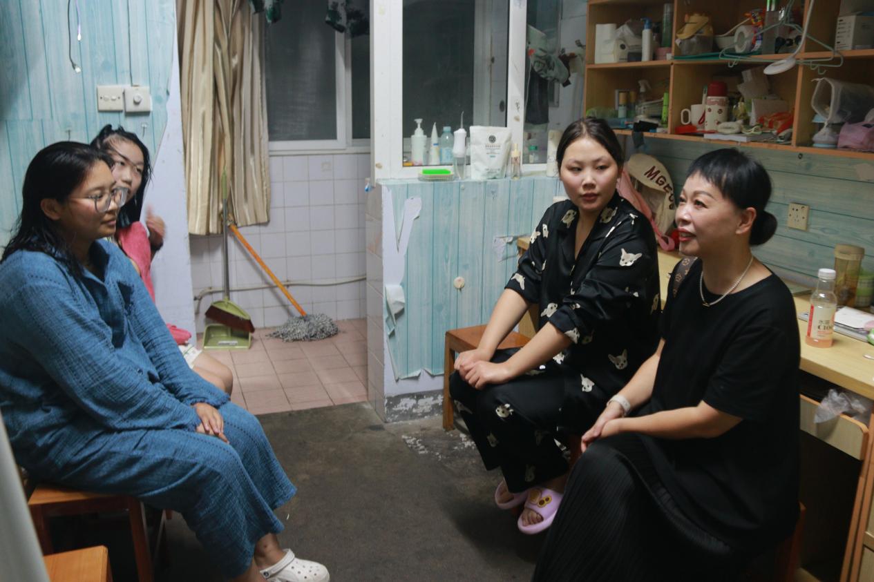 李冉一行每到一处便与新生亲切交谈,细致了解同学们入学后的生活状况。李冉重点关注了新生由家庭到校园环境的过渡情况,叮嘱大家合理规划学业、积极参与课外活动,尽快融入大学生活。刘玉洁逐一询问新生的未来发展规划,针对有志考研的同学,鼓励他们夯实专业基础、提升综合能力,并对同学们提出的困惑给予了详细解答。走访过程中,各位老师还就宿舍安全、防诈骗意识、卫生习惯等事项进行了提醒,强调要共同维护安全、整洁、和谐的居住环境。适逢国庆假期临近,老师们特别嘱咐新生注意出行安全,做好个人防护。