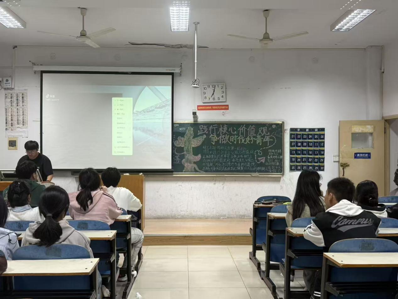 班会上,各班主讲人以一段“时代楷模青年代表”短片引入,通过张桂梅学生扎根基层奉献教育、航天青年团队勇克技术难关等生动事例,对“富强、民主、文明、和谐,自由、平等、公正、法治,爱国、敬业、诚信、友善”24字社会主义核心价值观的内涵进行了阐释,使抽象理念变得可感可知。在互动环节中,同学们围绕“身边的核心价值观”各抒己见,从同学间的真诚互助到参与公益的点滴收获,这些鲜活故事让抽象理念变得可感可触。