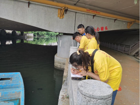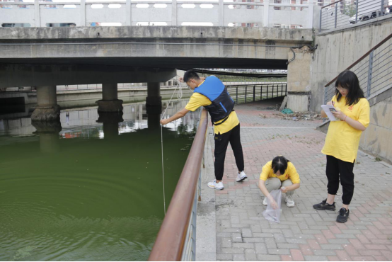 队员们通过拜访环保相关单位、实地考察、网上资料收集等,了解了南阳内河水系分布及综合治理情况,为后续工作顺利开展打好坚实基础。大家分小组沿着溧河、温凉河、梅溪河实地考察了内河的整治现状,查探了排污口、生活垃圾、截污治污、河长制落实情况等,并分别在温凉河、梅溪河各选取两个点采集水样。校内,实践队员们在流经校园的溧河河段、荷花池、梦溪湖观赏区及养殖区等十处采集水样。小组内部分工明确,清洁器皿、取水、拉绳、记录、贴标签、收集采样瓶,程序规范、井井有条,在保证安全的前提下,较快地完成了取样工作。