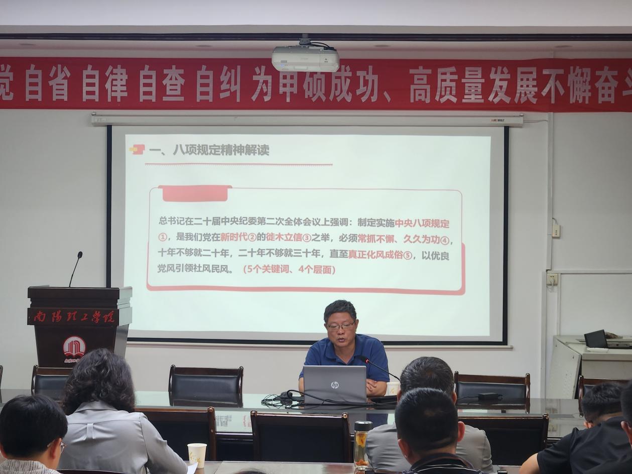 冯传亭以《中央八项规定及其实施细则精神:何以改变中国》为题,用详实的案例、生动的语言,围绕中央八项规定出台的背景、具体内容、实践成效以及如何在高校工作中落实等方面进行了深入解读,他强调,中央八项规定不仅是改进作风的利器,更是高校党员干部规范自身行为、营造风清气正育人环境的重要遵循,我们必须将其内化于心、外化于行。