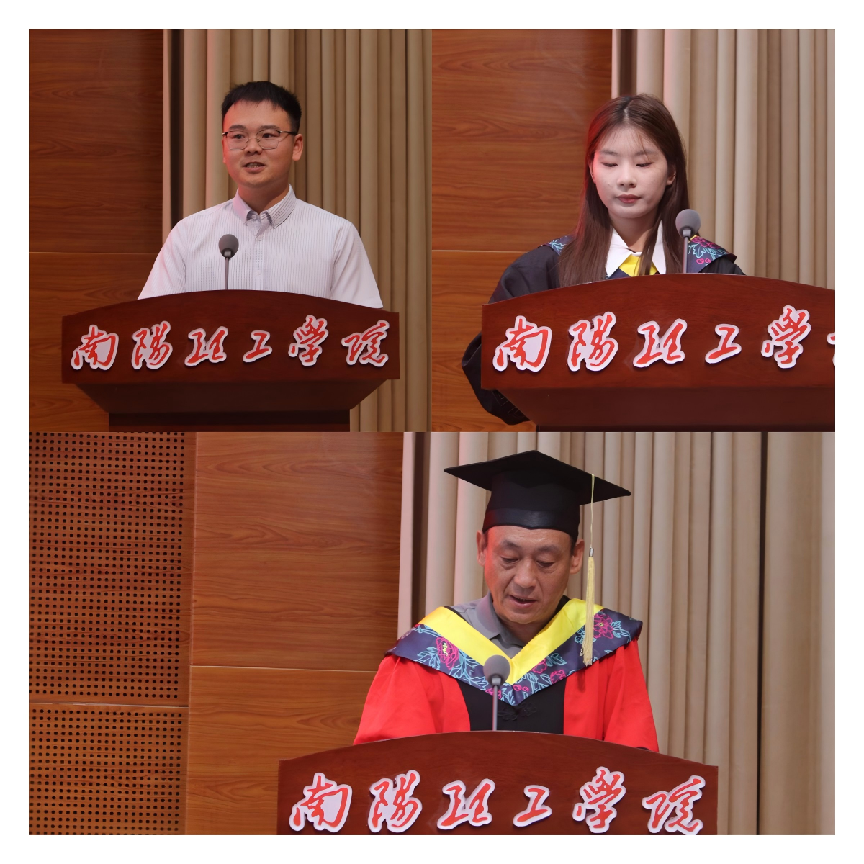 毕业生优秀导师代表吴鹏宇对毕业生致以诚挚的祝福,并回顾大学时光里同学们求知与成长的点滴。他鼓励同学们将毕业视为新起点,坚持梦想、直面挑战,以担当之姿践行责任,以终身学习保持进步。