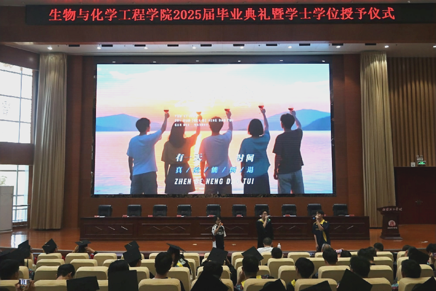 本网讯(学生通讯员/苏卓然 陈佳镓 秦珮玟)6月12日,生物与化学工程学院于第三报告厅举办2025届毕业典礼暨学士学位授予仪式。我院领导班子及全体教师、毕业生及在校生代表参加本次仪式,此次典礼由副院长李慧星主持。