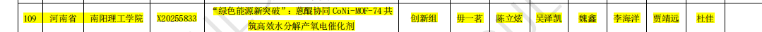 全国大学生生命科学竞赛是由竞赛委员会设立的大学生课外学术科技活动竞赛,每年举办一届,属于教育部认定的国家A类大学生竞赛。赛事聚焦生命科学领域,鼓励参赛团队围绕相关科学问题,开展跨学科自主性设计实验研究。备赛过程中,团队成员们齐心协力、日夜奋战,凭借着坚定的信念和团队协作精神,不断优化实验方案、研究方法。经评审,由杜佳老师指导,毋一茗、陈立炫、吴泽凯、魏鑫、李海洋、贾靖远参与的《“绿色能源新突破”:蒽醌协同CoNi-MOF-74共筑高效水分解产氧电催化剂》项目获得国家二等奖。这一成果彰显了团队在生命科学与能源领域交叉研究中的创新能力,也为学院学科建设再添亮色。