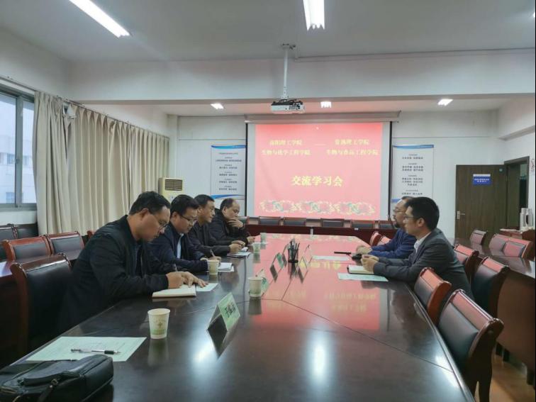 冀宏院长详细介绍了生物与食品工程学院在高水平应用型人才培养方案制定、一流专业建设、产业学院、校企协同育人方面积累的成果和经验。罗建成院长介绍了我院的师资队伍、专业特色、学院发展情况及此行调研的主要目的。双方重点就高水平应用型人才培养方案制定、一流专业建设、校企协同育人及实验室建设管理运营等方面的内容进行了交流探讨。