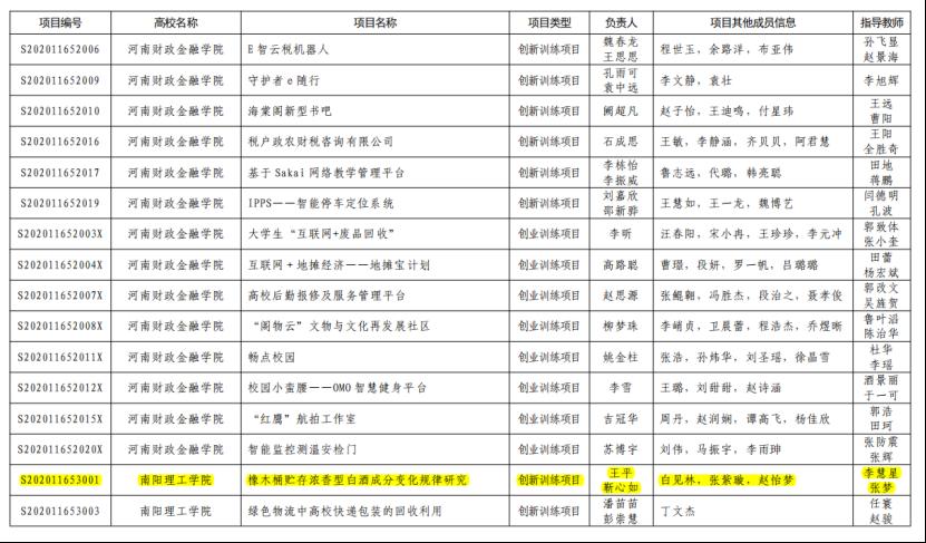 本网讯(学生通讯员/孙唯玉)近期,我院七个项目成功入选2020年河南省大学生创新创业训练计划项目,其中四项入选省级项目,三项入选国家级项目。