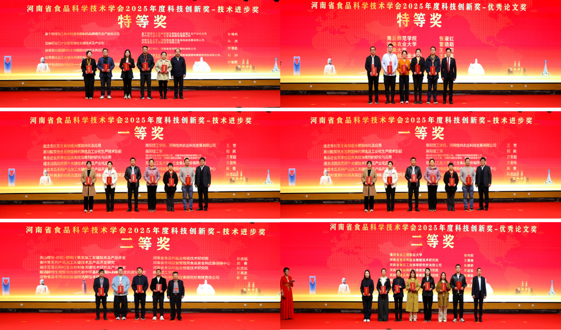 开幕式后,大会对河南省休闲食品产业培育优秀成果、河南省食品科学技术学会科技创新奖、河南省休闲食品工业设计大赛及共同体相关奖项进行表彰。李慧星荣获技术进步奖特等奖,王莹、程爽荣获技术进步奖一等奖,王来友荣获技术进步奖二等奖。许彬荣获优秀论文特等奖,王来友、吴鹏宇荣获优秀论文一等奖,乔沛荣获优秀论文二等奖。