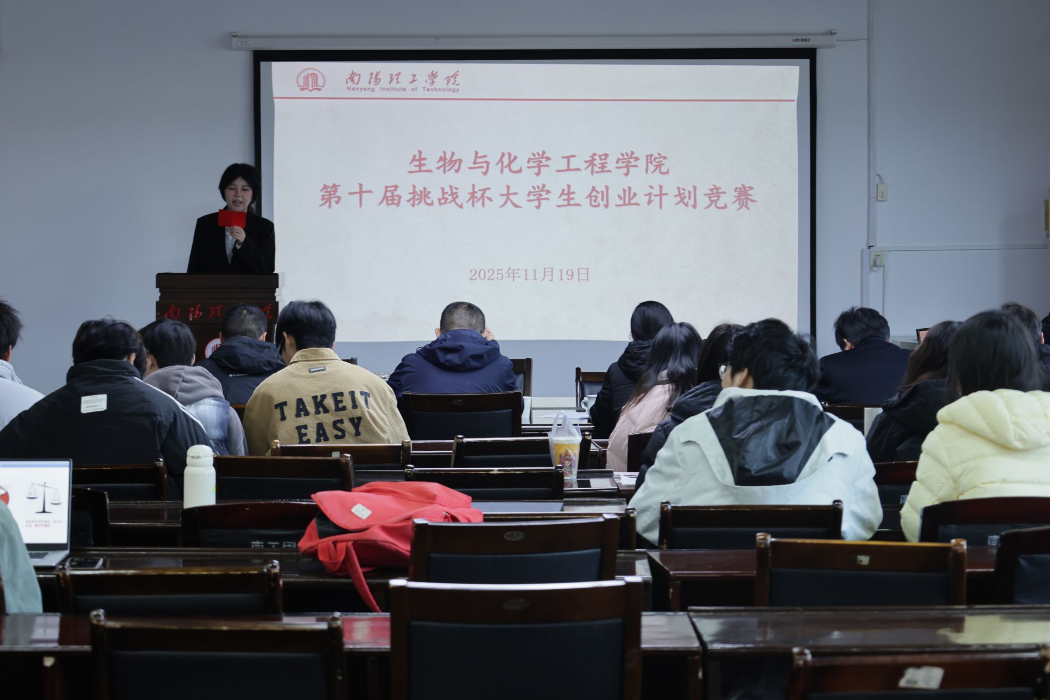 本网讯(学生通讯员/陈佳镓 郑宇扬)11月19日,生物与化学工程学院于9225会议室举办南阳理工学院第十届“挑战杯”大学生创业计划竞赛预赛,招生就业处老师郭勇、生化学院党委副书记刘玉洁、团学办主任张梦、生物教研室主任于海彦以及李秉轲老师担任本次大赛评委,部分学生观看。