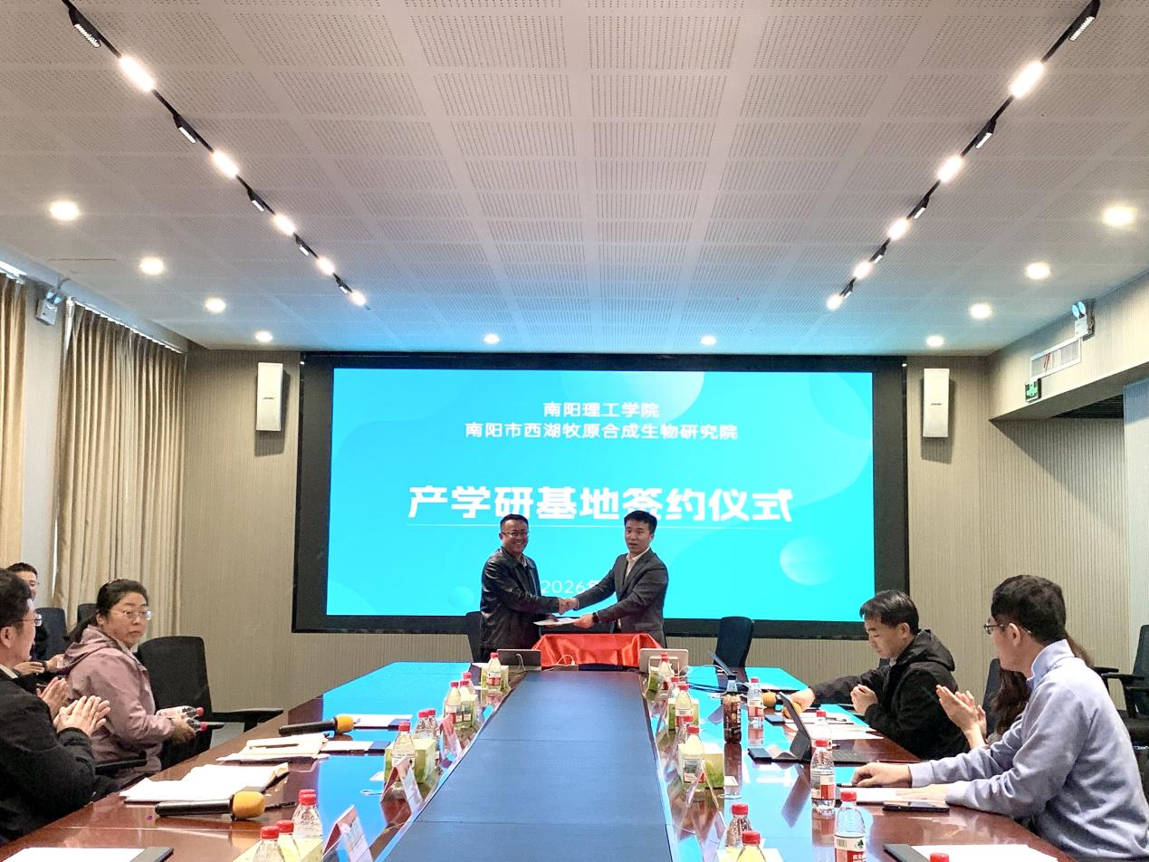 在声声合作成功、马到功成的美好祝愿中,吴战勇与张科春共同为“产学研基地”揭牌,标志着校院合作正式迈入新阶段。此次合作是南阳理工学院深化产学研用融合的重要实践,未来双方将聚焦合成生物学前沿领域与产业需求,在联合科研、人才共育、成果转化等方面协同发力,共同助力南阳生物经济产业高质量发展。据悉,生化学院目前已有6名学生遴选进入量产基地实习;2名学生与安粮达成就业意向。(摄影/蒋圣启 校对/梁瀚余 审核/李冉)