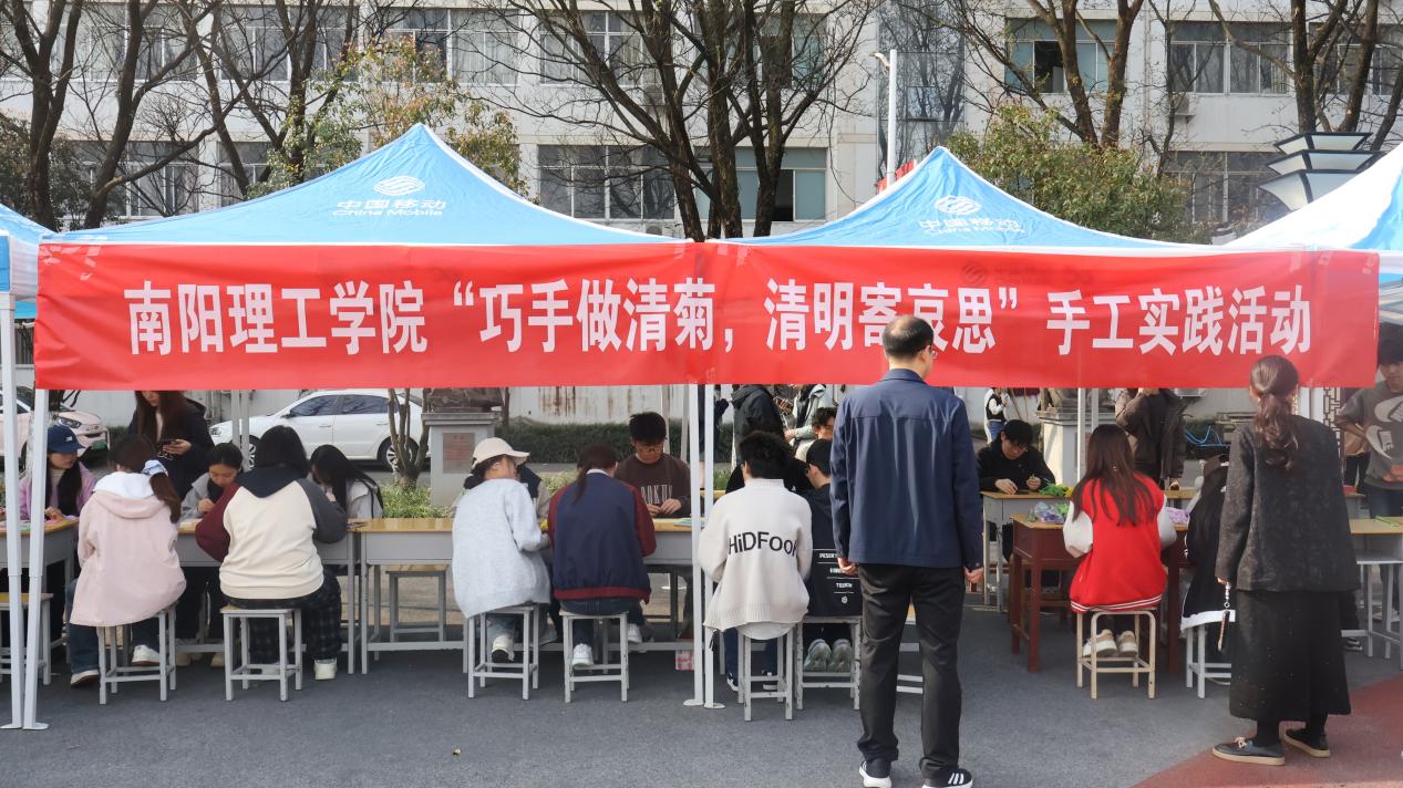 本网讯(特约记者/梁瀚余 学生通讯员/陈佳镓 杨子暄)为传承中华优秀传统文化、弘扬清明节日内涵,3月29日,由南阳理工学院党委学生工作部主办、生物与化学工程学院承办的“巧手做清菊,清明寄哀思”手工实践活动在东南校区法治广场举行。活动设置折纸、拼豆、扭扭棒菊花制作体验区,引导同学们以手工寄哀思、以匠心传文脉。