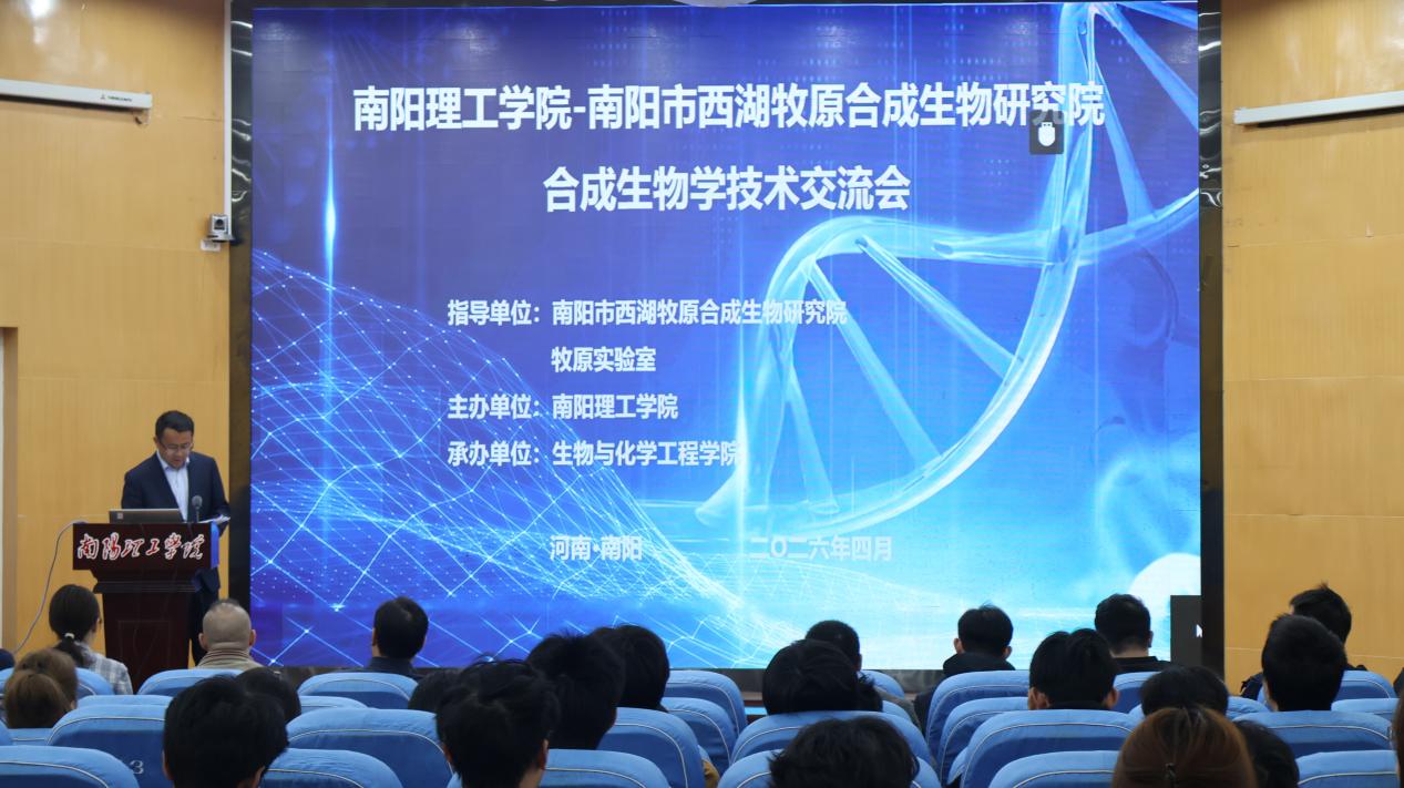 本网讯(学生通讯员/陈佳镓 刘阳)4月16日,由南阳理工学院主办、生物与化学工程学院承办,南阳市西湖牧原合成生物研究院与牧原实验室共同指导的“合成生物学技术交流会”在第二报告厅举行。本次会议聚焦合成生物学前沿技术及其产业化应用,生物与化学工程学院副院长李慧星担任主持,吸引了众多师生及行业专家到场参会。