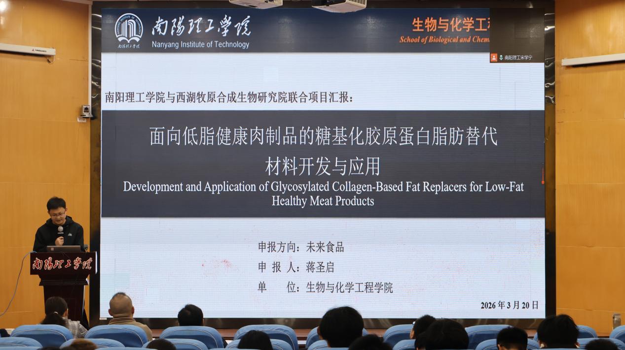 会议伊始,李慧星向与会人员表示热烈欢迎。他指出,合成生物学作为21世纪生命科学领域的战略性前沿技术,正深刻驱动生物经济变革。在此背景下,南阳理工学院始终高度重视产教融合与校企协同创新,本次交流会在南阳市西湖牧原合成生物研究院牧原实验室的学术与产业资源支持下,由学校统筹、生物与化学工程学院具体落实,旨在搭建高水平交流平台,促进科研成果转化与人才培养。他勉励与会师生珍惜机会、深入交流,共同助力合成生物学在南阳的创新发展与落地应用。随后,邓一洋、陈晓朋详细推介了该研究院的量产实验基地及公共技术平台的设备与服务能力,集中展示了指导单位从研发到量产的全链条支撑能力,为校企协同创新明确了具体落脚点。