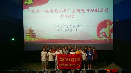 本网讯(学生通讯员/孙唯玉 何泓兴)为庆祝中国共产党建党100周年,7月1日,生化学院组织师生党员前往时代华纳影城观看电影《1921》。