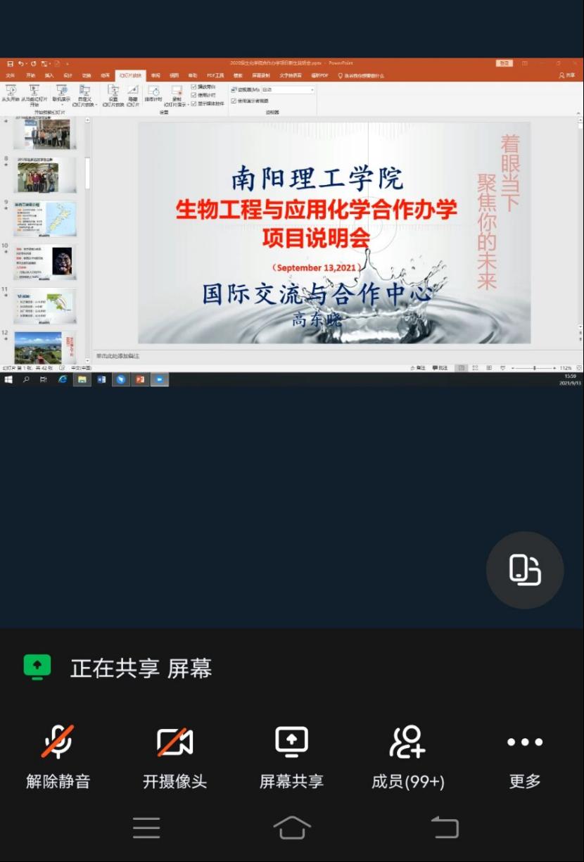 本网讯(学生通讯员/王梦凯 孙唯玉)9月13日,生化学院于线上开展中外合作办学项目专题讲座。本次讲座由国际交流合作中心副主任高东晓主讲,全体21级中外合作班新生参加本次会议。