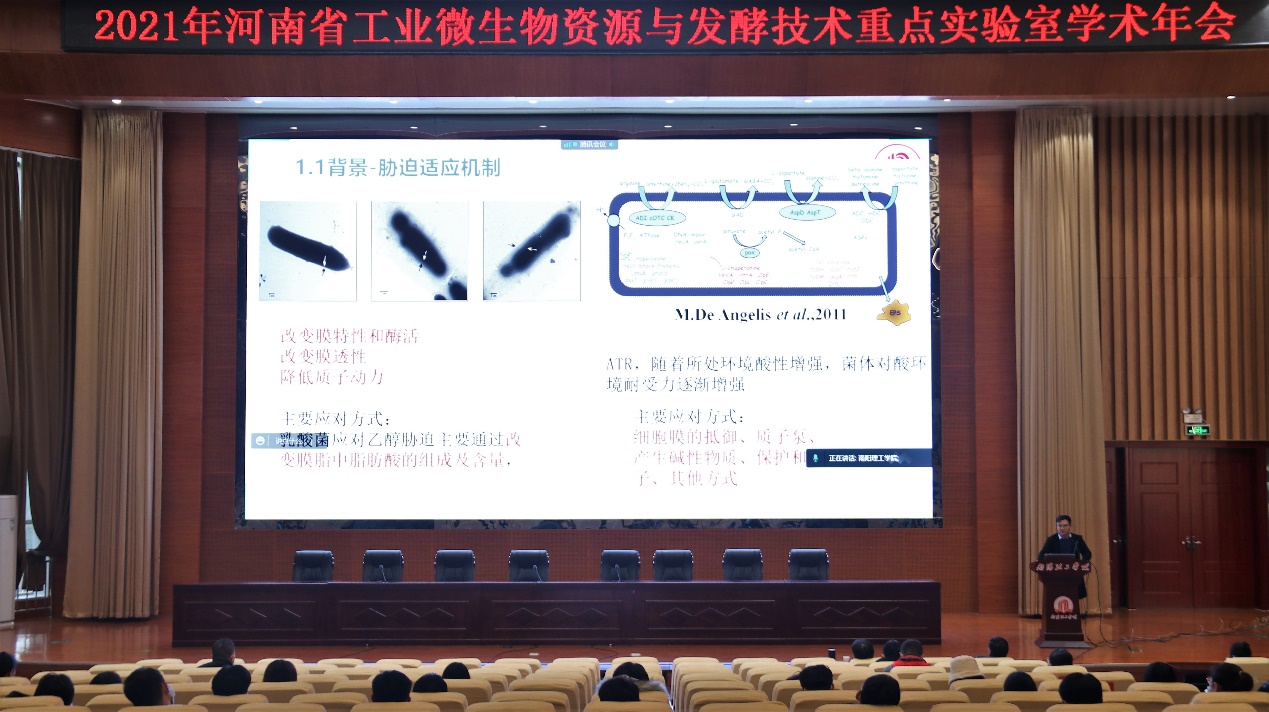 南阳理工学院生物与化学工程学院吴鹏宇博士以《副干酪乳杆菌固液态发酵抗逆差异机理研究》为题作学术报告。