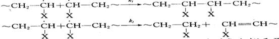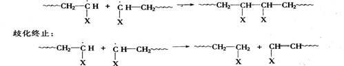 此外,自由基聚合中还可发生链转移反应,即链自由基从单体、溶剂、引发剂甚至从大分子链上转移出一个原子,使链自由基本身终止,便使失去原子的分子成为新的自由基,并继续增长形成新的活性链。
