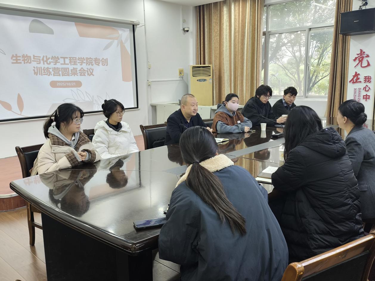 本网讯(通讯员/李玉玺 石枭雄)10月21日,生物与化学工程学院专创训练营第一次圆桌会议在9225会议室举行。学院相关领导、训练营相关企业及营员代表参加圆桌会议。