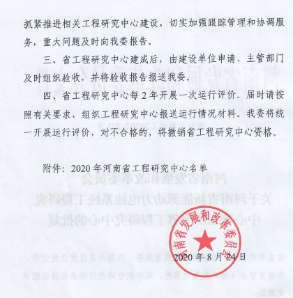 本网讯(特约记者/程爽)近日,河南省发展和改革委员会发布了《关于河南省新能源动力电池系统工程研究中心等137个省工程研究中心的批复》,其中我校生物与化学工程学院申报的“河南省难燃性热敏打印医疗胶片工程研究中心”获批立项建设。