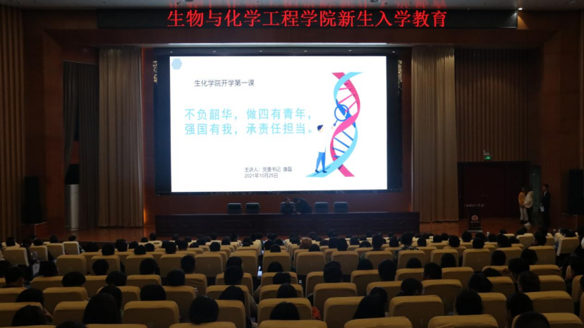本网讯(学生通讯员/朱辉午 戴元启)10月25日,生化学院于第三报告厅举办“开学第一课”主题教育讲座,本次讲座由生化学院党委书记康磊担任主讲,全体2021级新生聆听。
