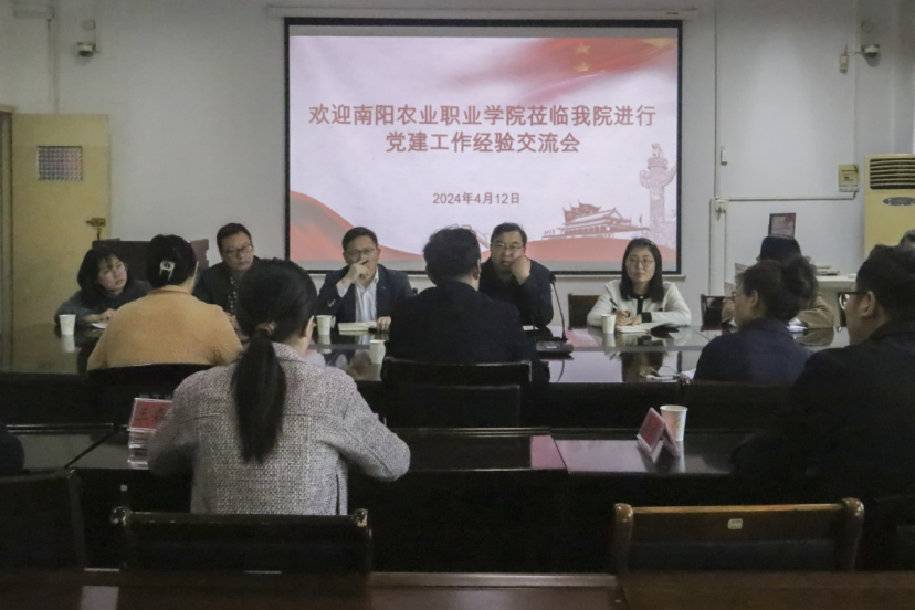 本网讯(学生通讯员/曹海贝 杨豆豆)4月12日,南阳农业职业学院莅临我院调研交流党建工作,交流会于9225会议室进行,南阳农业职业学院组织部部长彭经国一行7人出席会议,南阳理工学院组织部部长康磊、副部长王耀辉,生化学院党委副书记刘玉洁以及部分学院老师出席本次交流会。