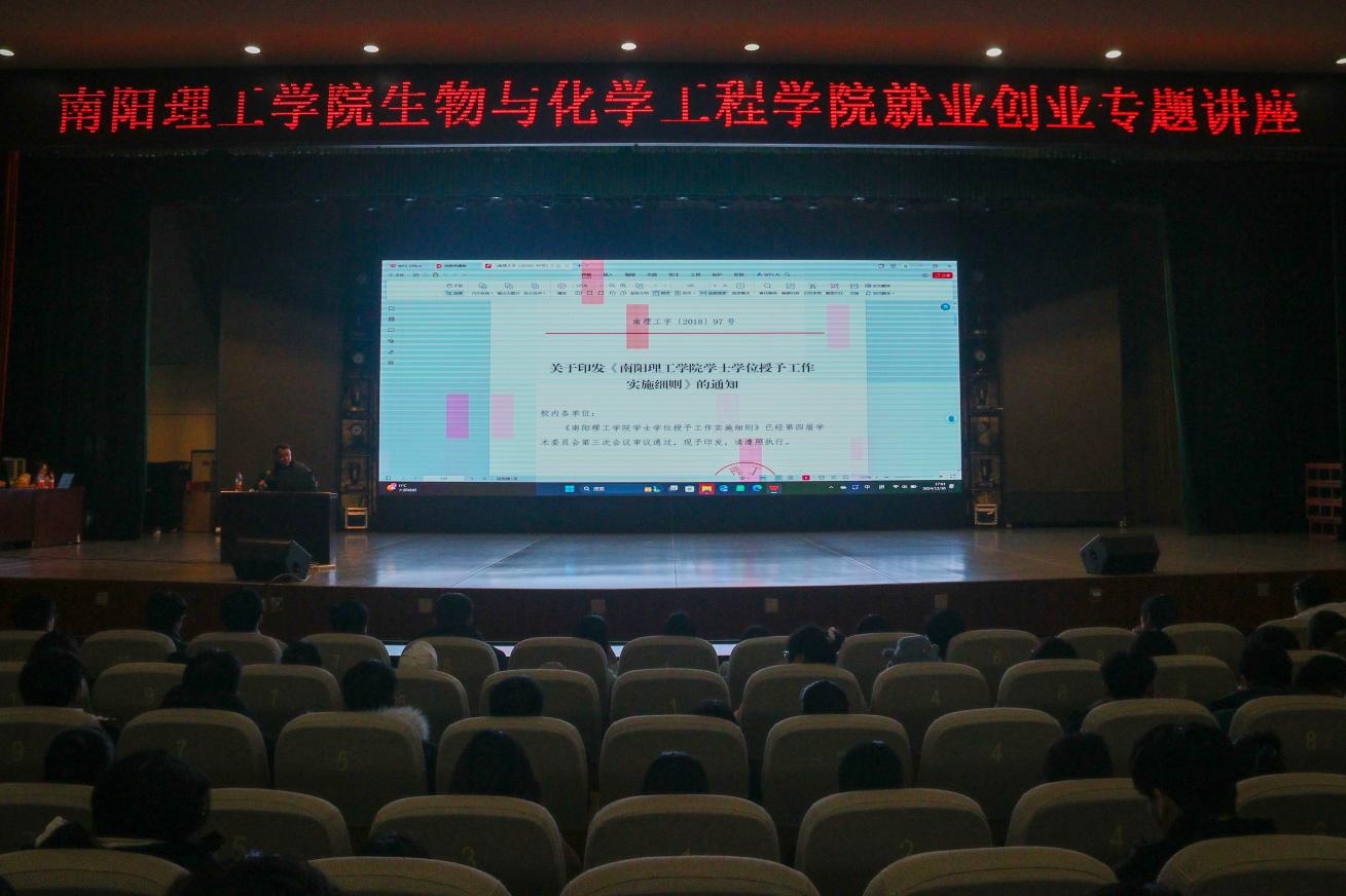 本网讯(学生通讯员/苏卓然 谷雪雯)12月30日,生化学院于毕业大厅举办毕业生就业创业专题讲座,此次大会由副院长李慧星主讲,全体2025届毕业生参加。