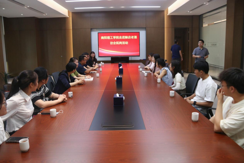 赊店老酒股份有限责任公司负责人对学院师生一行的到来表示热烈欢迎。李冉向企业代表详细介绍了学院的专业设置、人才培养及科研实力等情况,并希望通过此次访企拓岗促就业活动,能够进一步加强与赊店老酒的合作关系,共同探索人才培养的新模式,为行业输送更多高素质的专业人才。