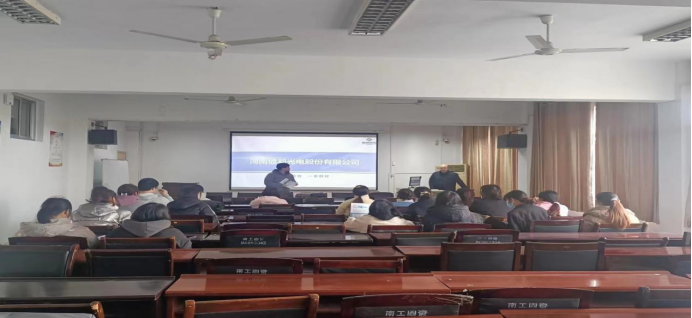 在本次宣讲会中,企业负责人先向同学们简要介绍了该公司的集团概况,人力资源体系,培养新人的计划,岗位介绍和公司荣誉等。在提问环节,企业负责人耐心地给同学们解疑答惑。宣讲会结束后,企业相关招聘人员进行了现场面试,同学们积极投递简历,向面试官们展露自身优势,给面试官们留下了深刻的印象。