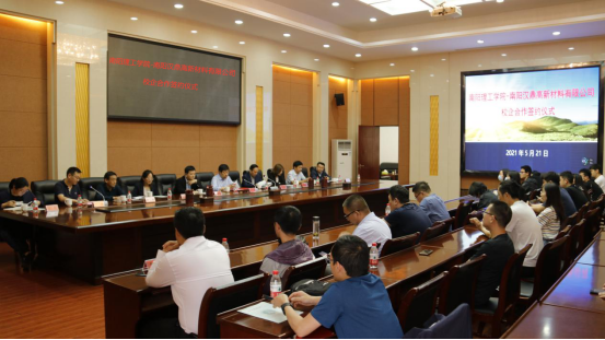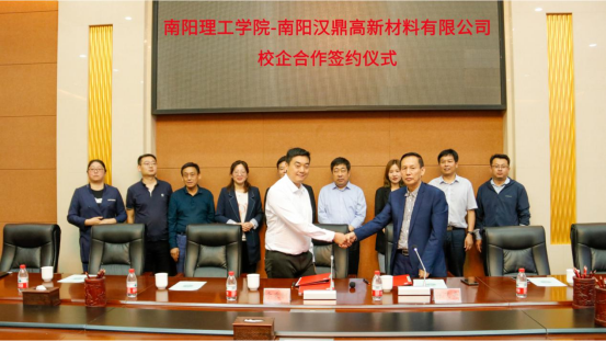本网讯(学生通讯员/薛孟晓 孙唯玉)5月21日,我校与南阳汉鼎高新材料有限公司校企合作签约仪式在会议中心举行。南阳理工学院副校长肖泽昌、南阳汉鼎高新材料有限公司总经理张庆亮出席仪式,生物与化学工程学院领导班子成员及学院教师代表、南阳汉鼎高新材料有限公司相关人员参加本次仪式。