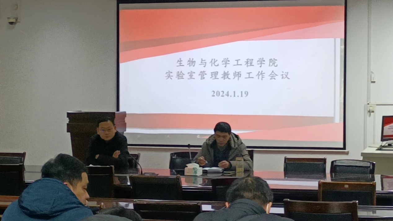 2024年1月18日,生物与化学工程学院领导班子对实验室进行了期末安全检查。1月19日,生物与化学工程学院全体实验管理教师在9225会议室举行实验室管理工作会议。该会议由生化学院实验实训中心组织,生化学院副院长刘学国、重点实验主任程爽出席。