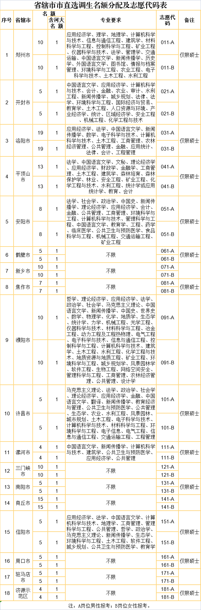 北京大学、中国人民大学、清华大学、北京航空航天大学、北京理工大学、中国农业大学、北京师范大学、中央民族大学、南开大学、天津大学、大连理工大学、吉林大学、哈尔滨工业大学、复旦大学、同济大学、上海交通大学、华东师范大学、南京大学、东南大学、浙江大学、中国科学技术大学、厦门大学、山东大学、中国海洋大学、武汉大学、华中科技大学、中南大学、中山大学、华南理工大学、四川大学、重庆大学、电子科技大学、西安交通大学、西北工业大学、兰州大学、国防科技大学、东北大学、郑州大学、湖南大学、云南大学、西北农林科技大学、新疆大学、中国科学院大学、中国社会科学院大学、中国农业科学院研究生院、中国政法大学、中央财经大学、中共中央党校、河南大学(仅报考省辖市市直岗位)