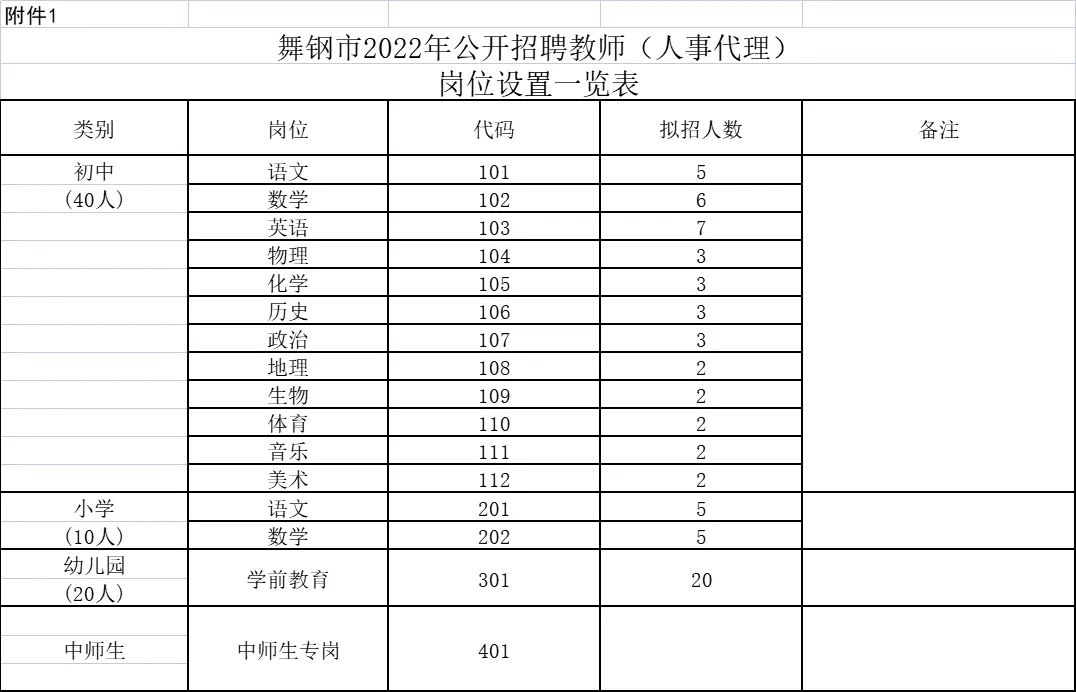 3.原舞钢市户籍于1998年、1999年、2000年初中毕业考入全日制普通中等师范学校的中师毕业生专岗,根据报名情况,由舞钢市2022年公开招聘教师(人事代理)工作领导小组研究确定招聘人数。