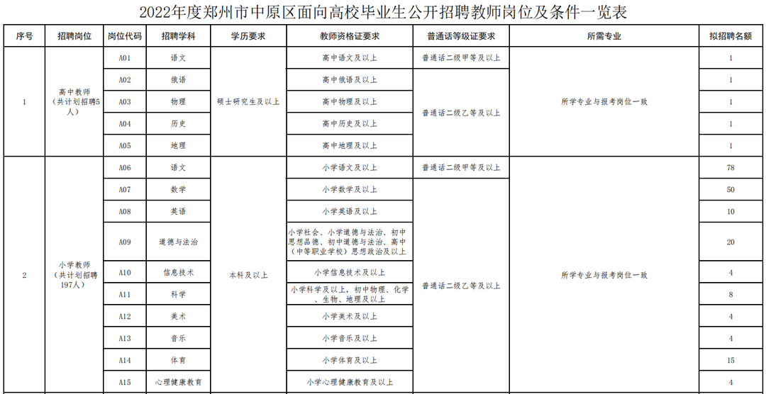 全国普通高等学校毕业生,硕士研究生年龄在30周岁以下(1992年1月1日后出生),本科年龄在28周岁以下(1994年1月1日后出生),大专年龄在25周岁以下(1997年1月1日后出生)。招聘名额及资格条件详见《2022年度郑州市中原区面向高校毕业生公开招聘教师岗位及条件一览表》。