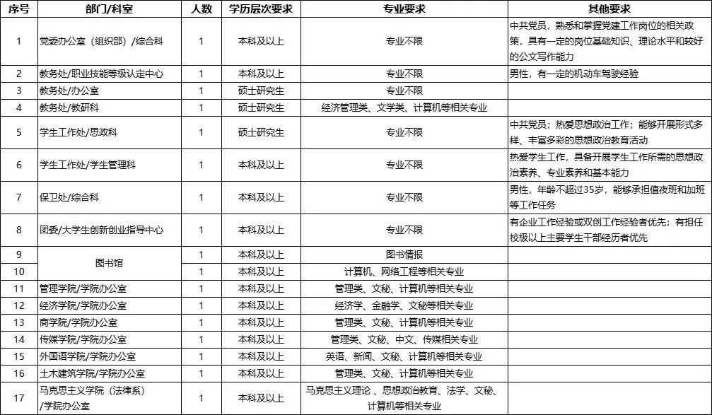 2.一般教师要求硕士研究生毕业并获得硕士学位,本硕专业相同或相近;一直在高校从事教学工作并取得讲师任职资格可适当放宽;