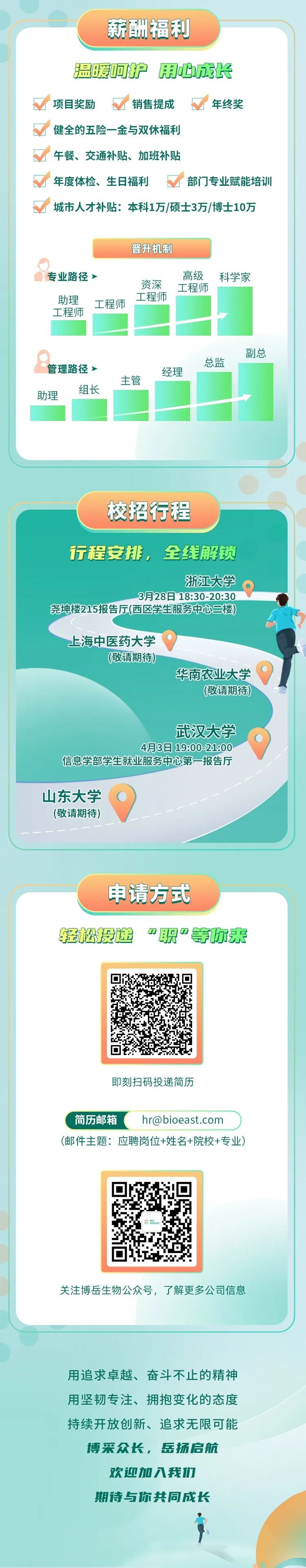 杭州博岳生物技术有限公司是一家专业为全球生物医药客户提供核心原料和整体解决方案的服务商。公司以分子生物学、免疫学、生物化学、蛋白质组学以及高分子纳米材料学为基础,建立了单(多)克隆抗体、原(真)核蛋白表达、蛋白纯化、原料评估及纳米材料等研发、生产平台。为客户提供抗原、抗体、生物酶、质控品、纳米微球等核心原料,并为IVD企业提供POCT、免疫比浊、化学发光等产品的整体解决方案。公司成功入选2020年浙江省科技型中小企业,在2020年11月先后获得凯风创投和元生创投千万级战略性融资;2021年8月获得“杭州市IVD核心原料研发中心”,同时获得亿元A轮投资;2021年9月入选杭州市“雏鹰计划”企业及“钱塘区2020年度雏鹰企业”;2021年12月获得“国家高新技术企业”称号;2022年4月完成1.5亿元人民币A+轮融资;2023年1月先后入选2022年杭州市专利试点企业、浙江省2022年度专精特新中小企业名单与2022年省高新技术企业研究开发中心!