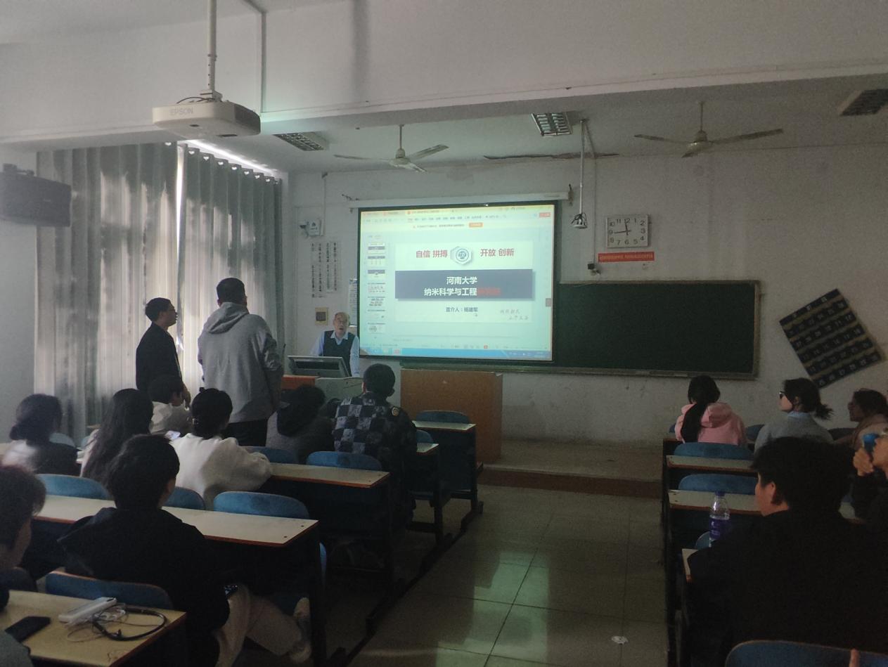 本网讯(学生通讯员/卢禹竹)4月6日,河南大学纳米科学与工程研究院、纳米杂化材料应用技术国家地方联合工程研究中心走进南阳理工学院,在九号教学楼9612教室举办了一场聚焦2025年研究生调剂与2026年考研的宣传活动,吸引众多怀揣科研梦想的学子参与,我院23级与21级部分同学参加此次宣讲会。