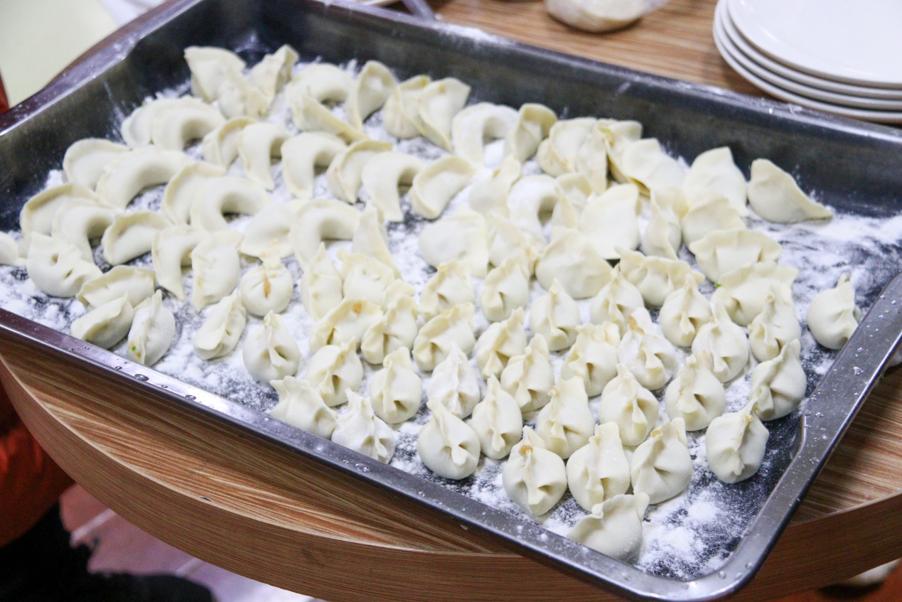 师生们热情高涨,积极参与,动作娴熟,分工明确,准备好之后纷纷开始填馅、捏饺子,动作连贯,一气呵成。不一会,一个个边窄肚圆、饱满诱人的花式饺子像变戏法似的从一双双巧手中“冒”了出来,整整齐齐地排在盘子里。当热气腾腾的饺子端上餐桌的时候,不仅让大家感受到生化大家庭的温暖,更是体会到传统节日的魅力。