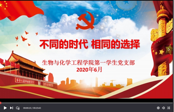 本网讯(学生通讯员/李卓 何泓兴)根据中共南阳理工学院委员会组织部《关于开展全校基层党组织常态化疫情防控“四个一”行动方案的通知》要求,6月23日起,生化学院4个师生党支部以线上线下的方式分别举行了微党课视频学习、“迎党的生日、讲战疫故事、悟初心使命”主题组织生活会、“牢记初心使命 争当出彩先锋”主题党日活动。