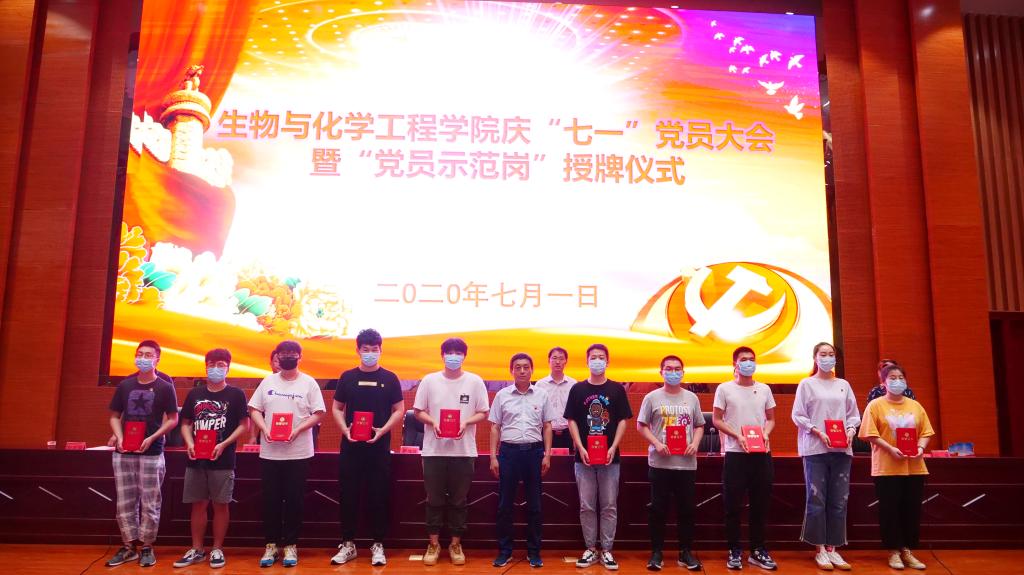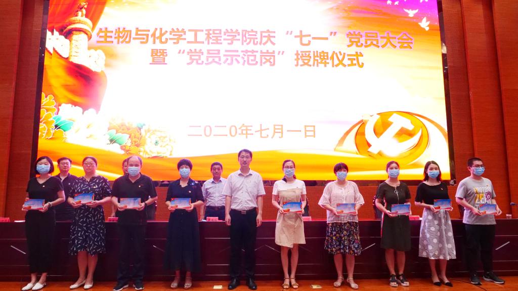 大会在庄严肃穆的国歌声中拉开帷幕。李慧星宣读了《生化学院关于设置“党员示范岗”的决定》,党委书记康磊为获得“党员示范岗”的九名同志授牌。