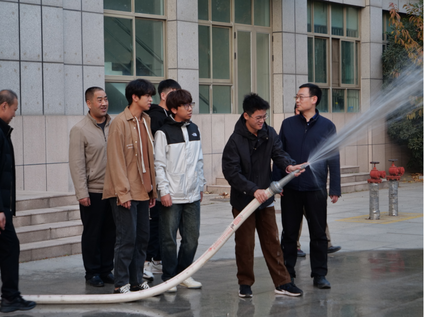 王福军从火灾致人死亡的原因、火灾处置的基本技能、火灾逃生的基本技巧以及消防安全“四个能力”建设四个方面详细讲述了火灾的危害以及应对办法。他通过一个个真实的火灾案例,为同学们分析了火灾致人死亡的原因和生活中可能存在的各种火灾隐患,他指出同学们一定要增强消防安全意识,掌握火灾逃生技巧。同时,王福军现场为同学们展示灭火器和消火栓的使用方法,同学们对此十分感兴趣,现场氛围十分愉快。刘学国带领参会师生来到微型消防站进行现场演练,通过实际操作消防器材,现场师生切实掌握消火栓的使用方法。
