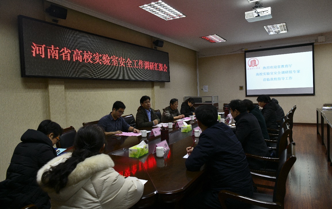 本网讯(特约记者/李焕新)11月26日,河南省教育厅高校实验室安全调研组宋安东、刘春峰、王斌和王晓松一行四人对我校实验室安全工作进行调研,副校长王玉磊陪同调研,实验室建设管理运营中心、党委保卫工作部、后勤服务中心等单位相关同志参加会议。