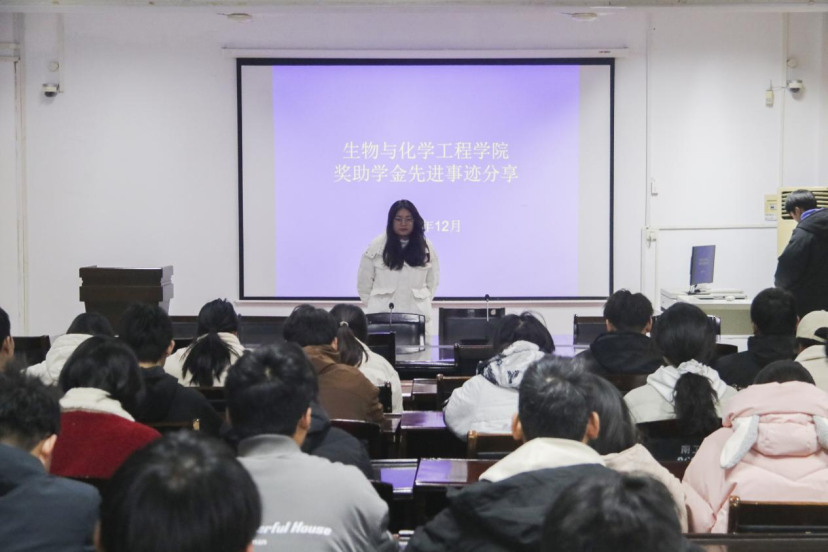 本网讯(学生通讯员/曹海贝 杨豆豆)12月30日,生化学院于9225会议室举办奖助学金先进事迹分享会,部分学生参加本次活动。