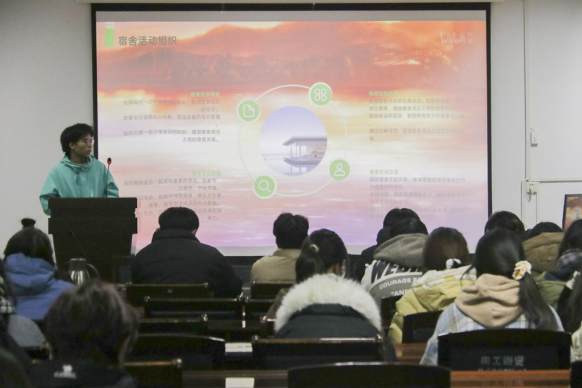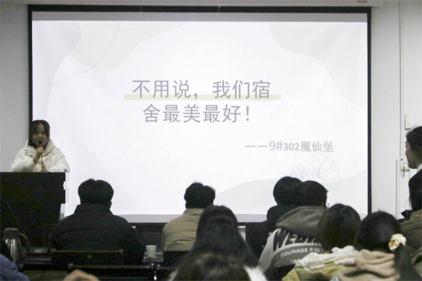 本次活动中,宿舍代表通过PPT展示了各自宿室的友爱精神与整洁内务,介绍了各自宿室自开学以来发生的暖心小事、装扮宿舍的理念等。各评委秉持着“公平、公正、公开”的原则,严格依照评比细则,对各参赛寝室进行多方面的考量,从而进行打分,最大程度保证了比赛的公平公正。通过评委最终评选,10#420宿舍获得一等奖,9#302和9#307宿舍获得二等奖,9#608、9#507、21#612宿舍获得三等奖,郭松涛、丁旭平、赵腾飞依次对获奖宿舍发放证书予以嘉奖。