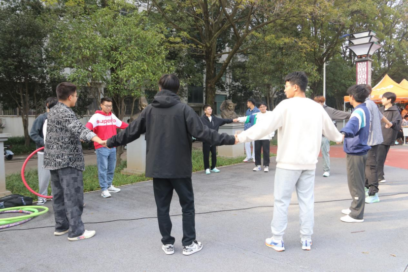 本次活动共设有四个游戏环节,经主持人介绍完规则后,以班级为单位展开。本次活动分为“扭转乾坤”“穿针引线”“同舟共济”“无敌风火轮”四个游戏项目。这些游戏环节集活动性、体验性、趣味性于一体,同学们精神抖擞,活力十足,积极参与到各个游戏环节当中,玩得不亦乐乎,现场充满了欢声笑语,氛围十分热烈。