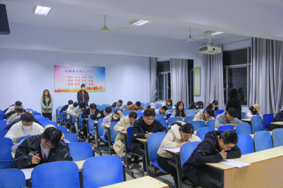 此次入党积极分子结业考试是对同学们参加学院分党校党课培训的检验和总结,有利于入党积极分子端正入党动机,提高自身政治素养。(摄影/学生通讯员王娜 曹硕