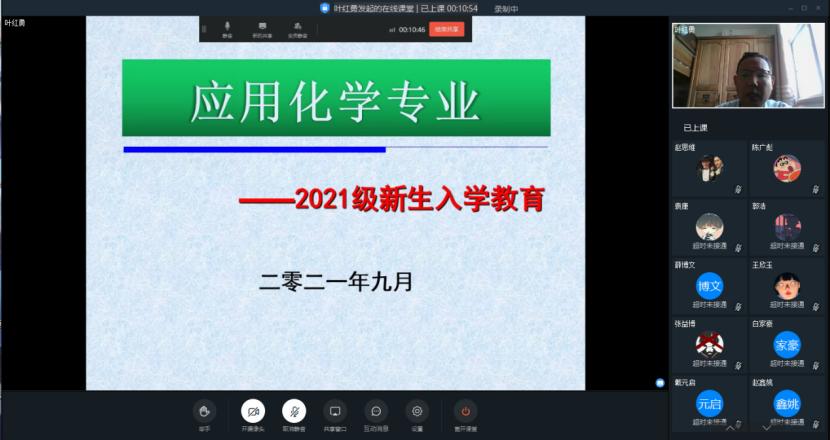 本网讯(学生通讯员/孙唯玉 朱辉午)9月14日,生化学院于线上举办2021级新生入学教育专题讲座。本次讲座由应用化学和生物工程教研室主任主讲,应用化学和生物工程专业全体学生参加本次讲座。