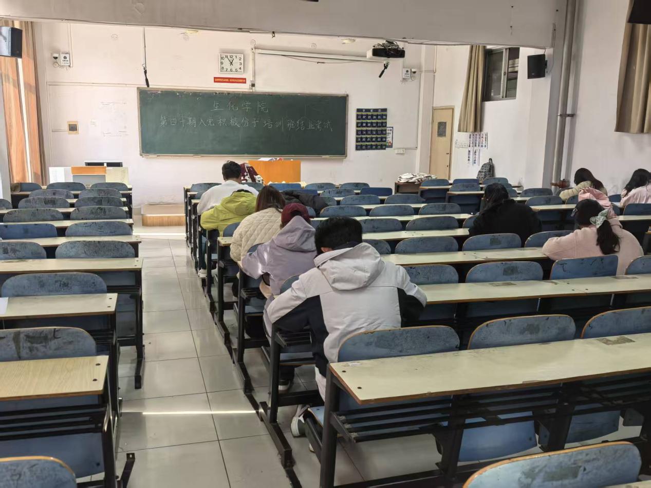 本网讯(学生通讯员/陈佳镓 刘观锋)为检验入党积极分子党课学习成果,严把党员发展入口关,11月11日,生化学院于9505、9507教室举行第40期入党积极分子结业考试,学院全体入党积极分子参加。