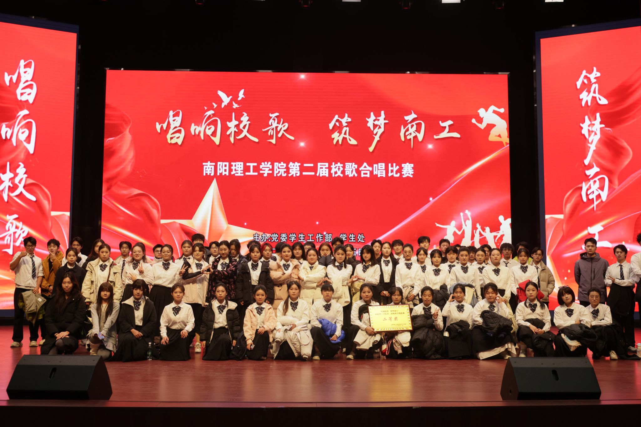 本网讯(学生通讯员/陈佳镓 梁梦慧)11月25日,南阳理工学院于东校区音乐厅举办“唱响校歌 筑梦南工”第二届校歌合唱比赛。我院合唱团凭借出色表现,荣获二等奖。