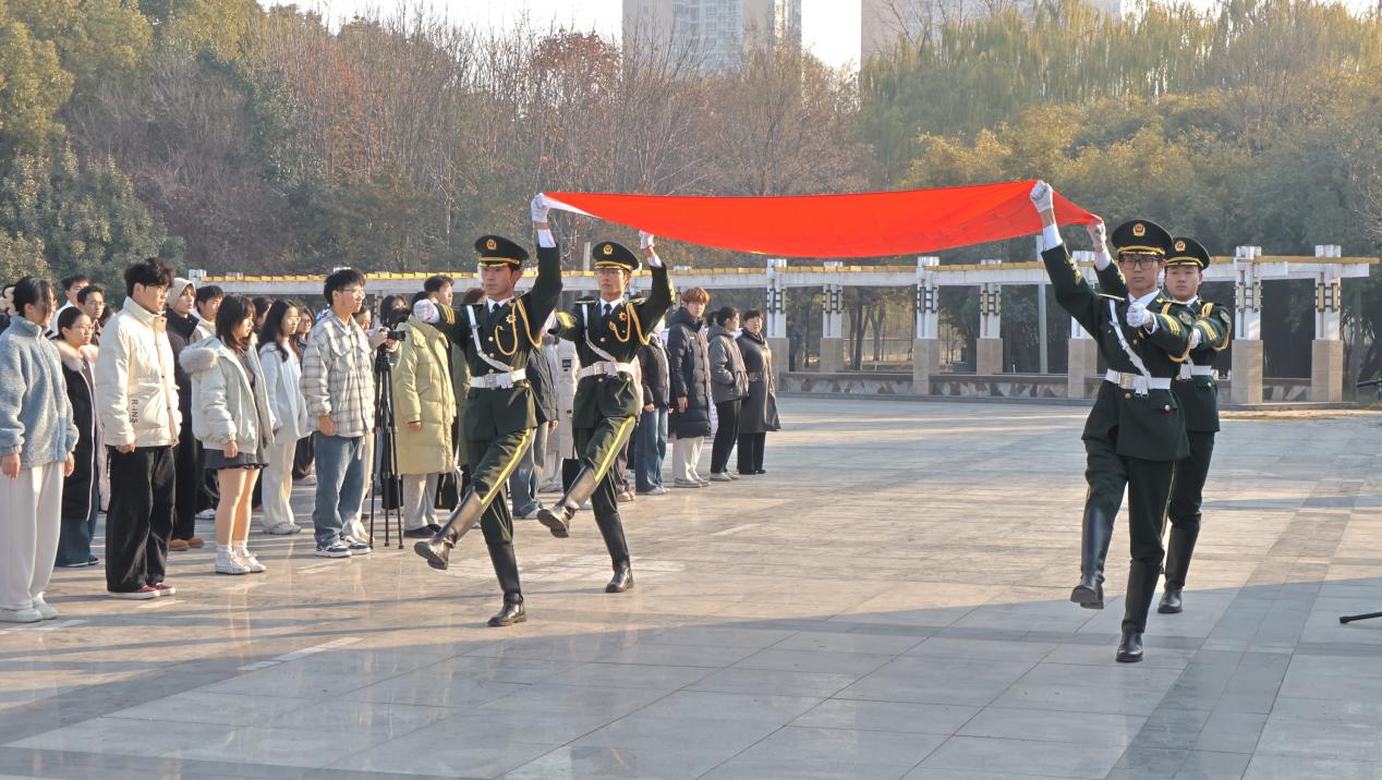 本网讯(学生通讯员/陈佳镓 王冬怡)为深化新生入学教育内涵,厚植爱国情怀,12月6日,我校在齐贤广场开展纪念“一二·九”运动90周年主题实践活动,生化学院2025级全体学生参加。