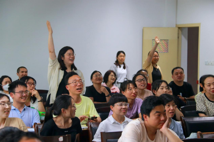 党委书记康磊为老师们对生化学院的辛勤付出表示感谢并送出衷心的节日祝福。竞猜活动在轻松愉快的氛围中拉开帷幕,20道题目涵盖了端午节的由来、典故、风俗习惯、古诗词等文化常识及党史等内容。老师们纷纷举手抢答,活动现场气氛热烈,欢声笑语不绝于耳。