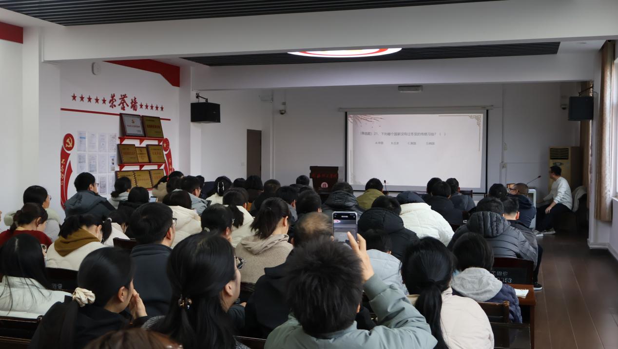本次活动由学院党委副书记刘玉洁主持,她简要介绍了活动流程与竞赛规则,并鼓励教职工积极思考、踊跃竞答。本次活动共设32道有奖抢答题,以单选题形式呈现,内容分为冬至传统文化与党的理论知识两大板块,涵盖节气起源、民间习俗、相关诗词及党的理论要点等方面。现场气氛活跃热烈,教职工们沉着思考、迅速抢答,展现出丰富的知识储备和积极的精神风貌,精彩表现不时引来阵阵掌声。最后,学院为答题正确的教职工颁发了纪念品。