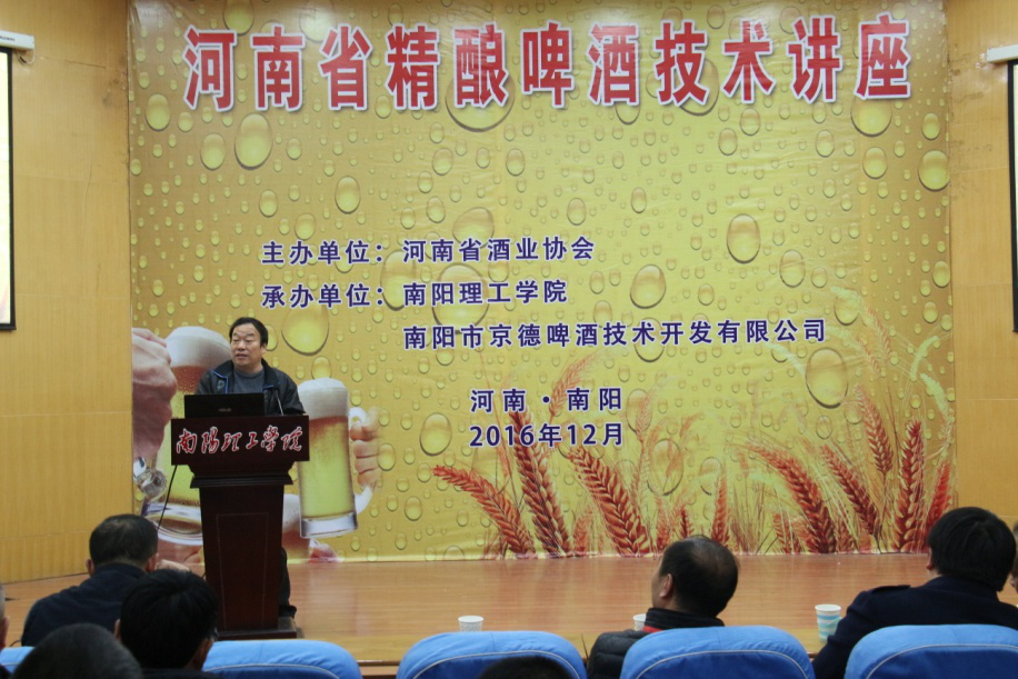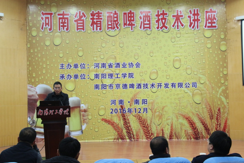 12月16日,河南省精酿啤酒技术讲座在我校中关村领创空间二楼报告厅举行。河南省酒业协会专家委员会副主任白全星、河南省酒业协会专家委员会温建等省内精酿啤酒专家、河南省酒业协会精酿啤酒专业委员会会员单位、南阳市京德啤酒技术开发有限公司技术人员、生物与化学工程学院师生近300人聆听了本次讲座。讲座由生物与化学工程学院副院长罗建成教授主持。